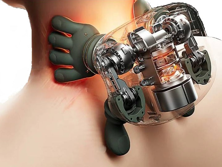 La cabeza de masaje inferior replica la presión del pulgar para estimular hombros y espalda.